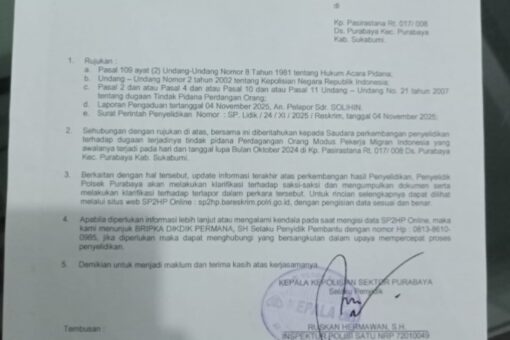 PURABAYA – SUKABUMI, MB1 II Kasus Sponsorship trafficking atau Tindak Pidana Perdagangan Orang (TPPO) dengan Modus Sponsor Masih Marak di Indonesia. Seperti halnya yang terjadi kepada salah satu korban Solihin warga Kp. Pasi...