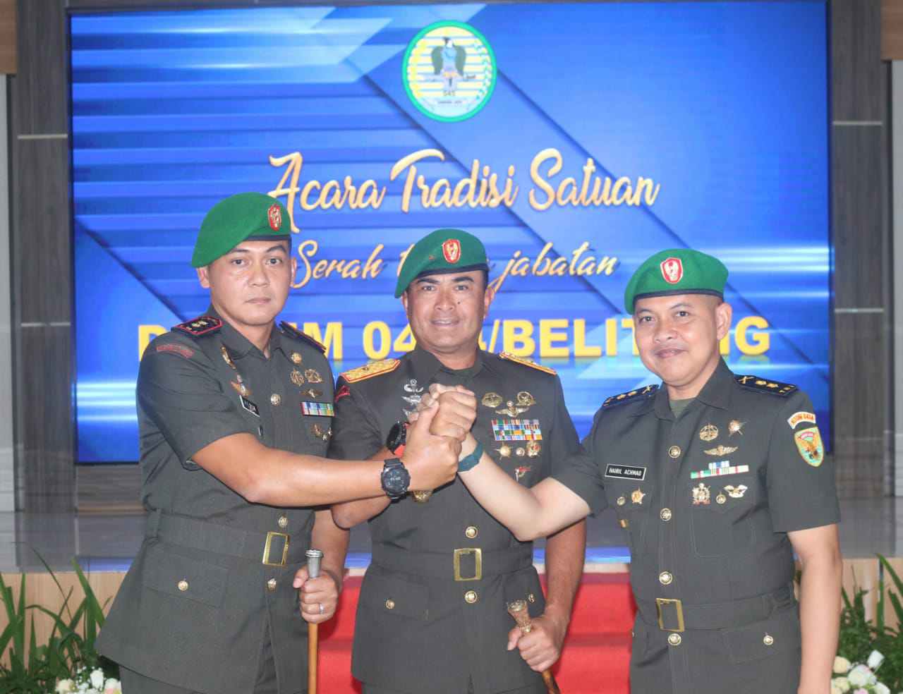 PANGKALPINANG – MB1 || Danrem 045/Gaya Brigjen TNI A. Dedy Prasetyo, S.I.P., Memimpin serah terima Jabatan Dandim 0414/Belitung dari Letkol Inf Hairil Achmad kepada Letkol Inf Herik Prasetiawan, bertempat di Aula Makorem 045/Gaya, Pangkalpinang, Jumat (11/08/2023).