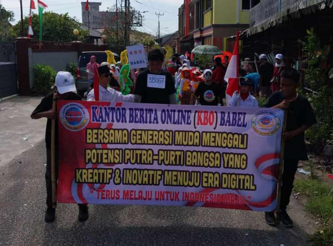 Kantor Berita Online (KBO) Bangka Belitung tak lupa ikutserta mengisi di kegiatan karnaval HUT RI KE-78 bersama anak-anak sekolah dasar (SD) yang merupakan binaan dari KBO Babel.