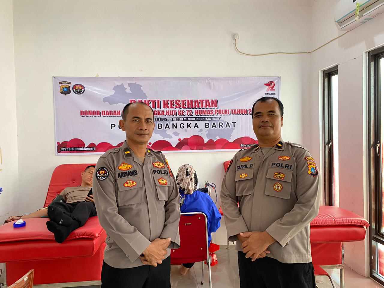 BANGKA BARAT – MB1 II Polres Bangka Barat melaksanakan kegiatan Donor Darah dalam Rangka Hari Ulang Tahun Humas Polri ke-72 sekira pukul 09.00 WIB, bertempat di kantor PMI Kabupaten Bangka Barat, Senin (02/10/2023).
