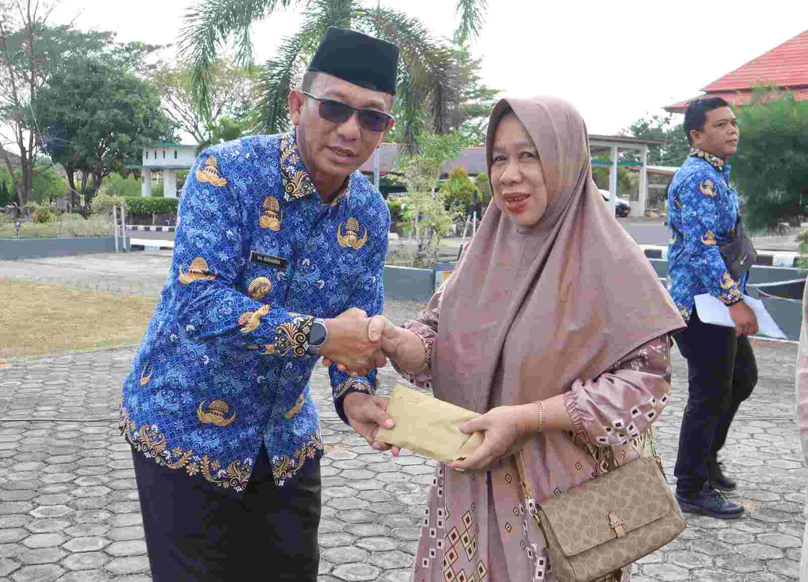 Santunan diserahkan langsung oleh Ketua KORPRI dan sejumlah pejabat di lingkungan Pemkab Beltim usai Apel Bulanan KORPRI di Halaman Kantor Bupati, Rabu (18/10/2023).