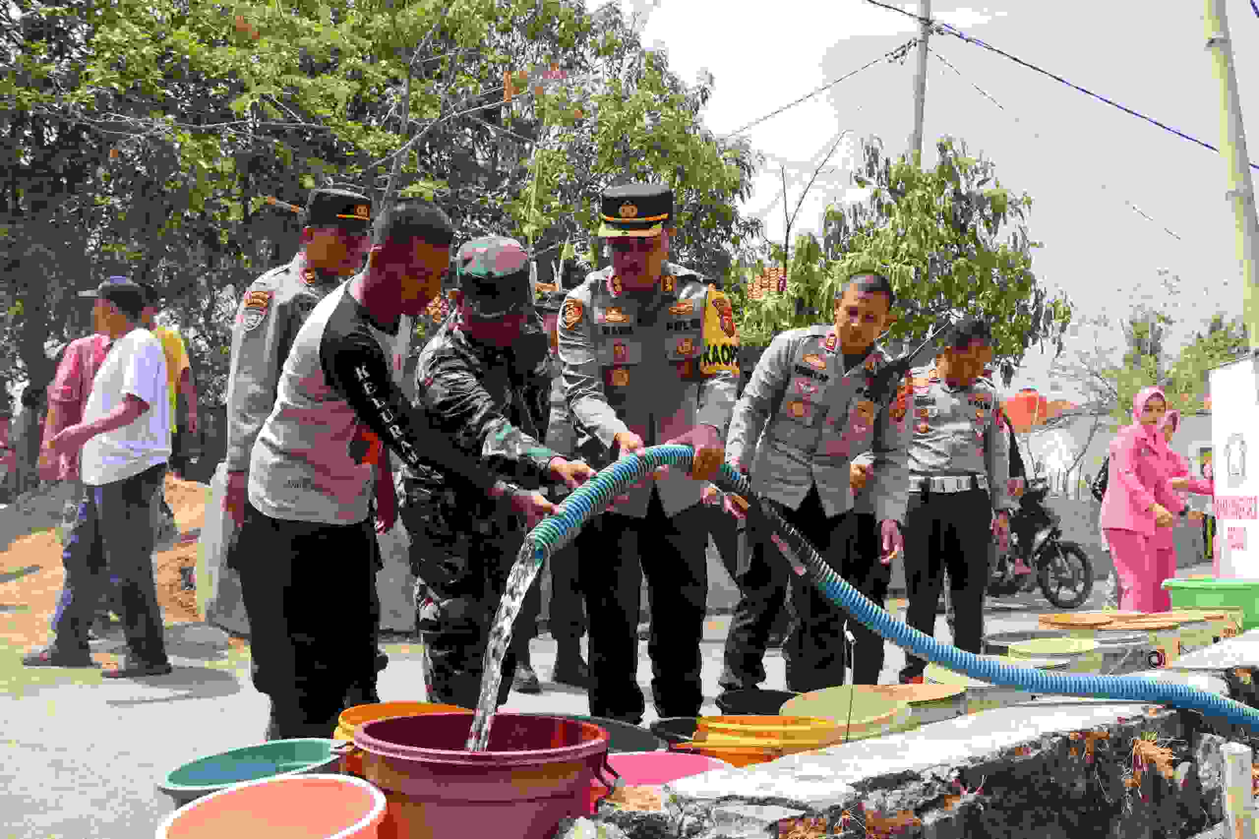 Secara simbolis Kapolres Cirebon Kota Polda Jabar AKBP Muhammad Rano Hadiyanto, S.Ik.,M.M menyerahkan 3 unit mobil tangki air bersih dan 100 paket sembako kepada masyarakat.