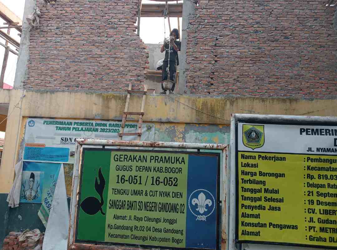 Berdasarkan pemantauan Pembangun Gedung SDN 02 Desa Gandoang, yang di kerjakan CV Liberty Karya Mandiri yang menyedot APBD Kabupaten Bogor senilai Rp. 819, 033. 300 juta, yang diperkirakan rampung pada 19, Desember 2023, diduga tampak tak sesuai RAB.