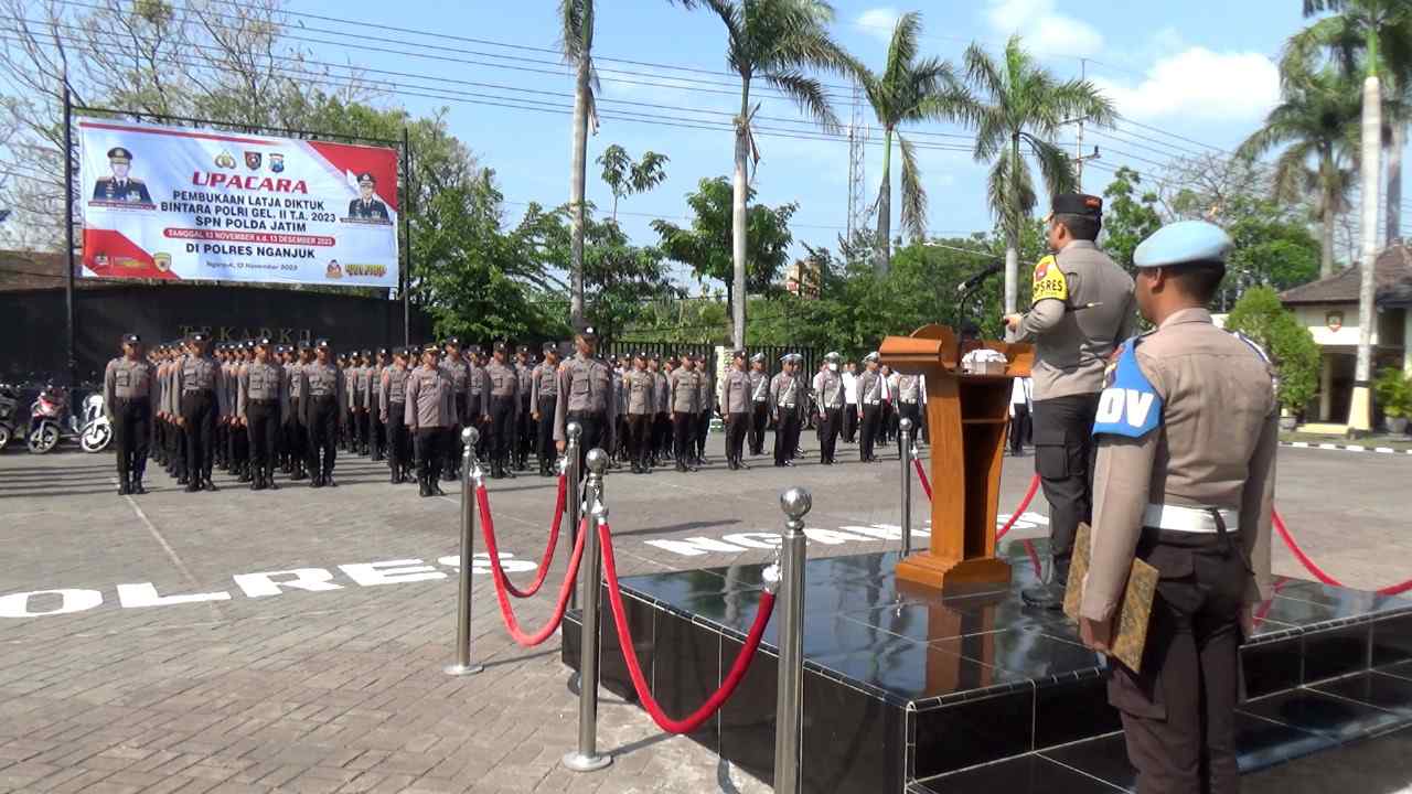 Hal ini disampaikan Kapolres dalam amanatnya saat memimpin upacara Pembukaan Latja Diktu Bintara Polri Gelombang II Tahun 2023 SPN Polda Jatim yang dilaksanakan pagi ini di lapangan Apel Polres Nganjuk. Latihan kerja akan dilaksanakan selama 30 hari, Senin (13/11/2023).
