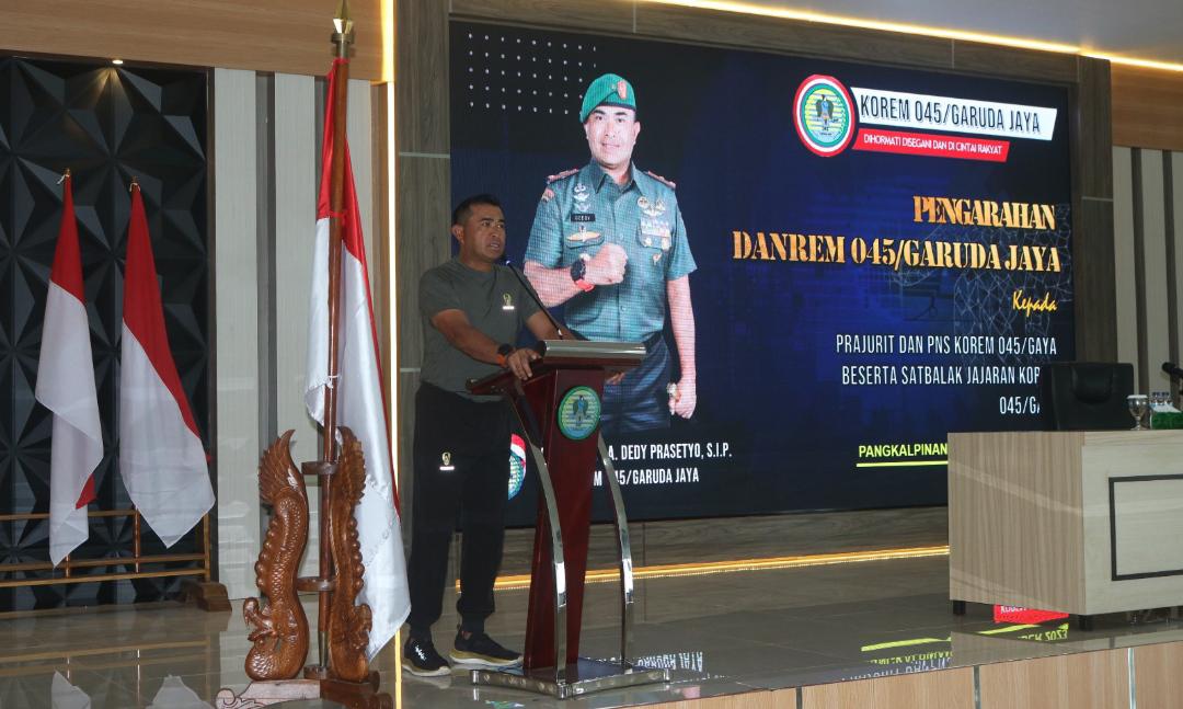 Danrem menyampaikan masalah pemilihan legislatif pemilihan Presiden dan Pilkada ” Kita sudah jelas ditekankan dari pimpinan , untuk TNI, Polri dan ASN itu netral ” yang ingin saya sampaikan secara tehnis kita anggota, keluarga, istri dan anak tidak usah ikut berkomentar di media sosial terkait Pemilu.” Ujar Danrem.