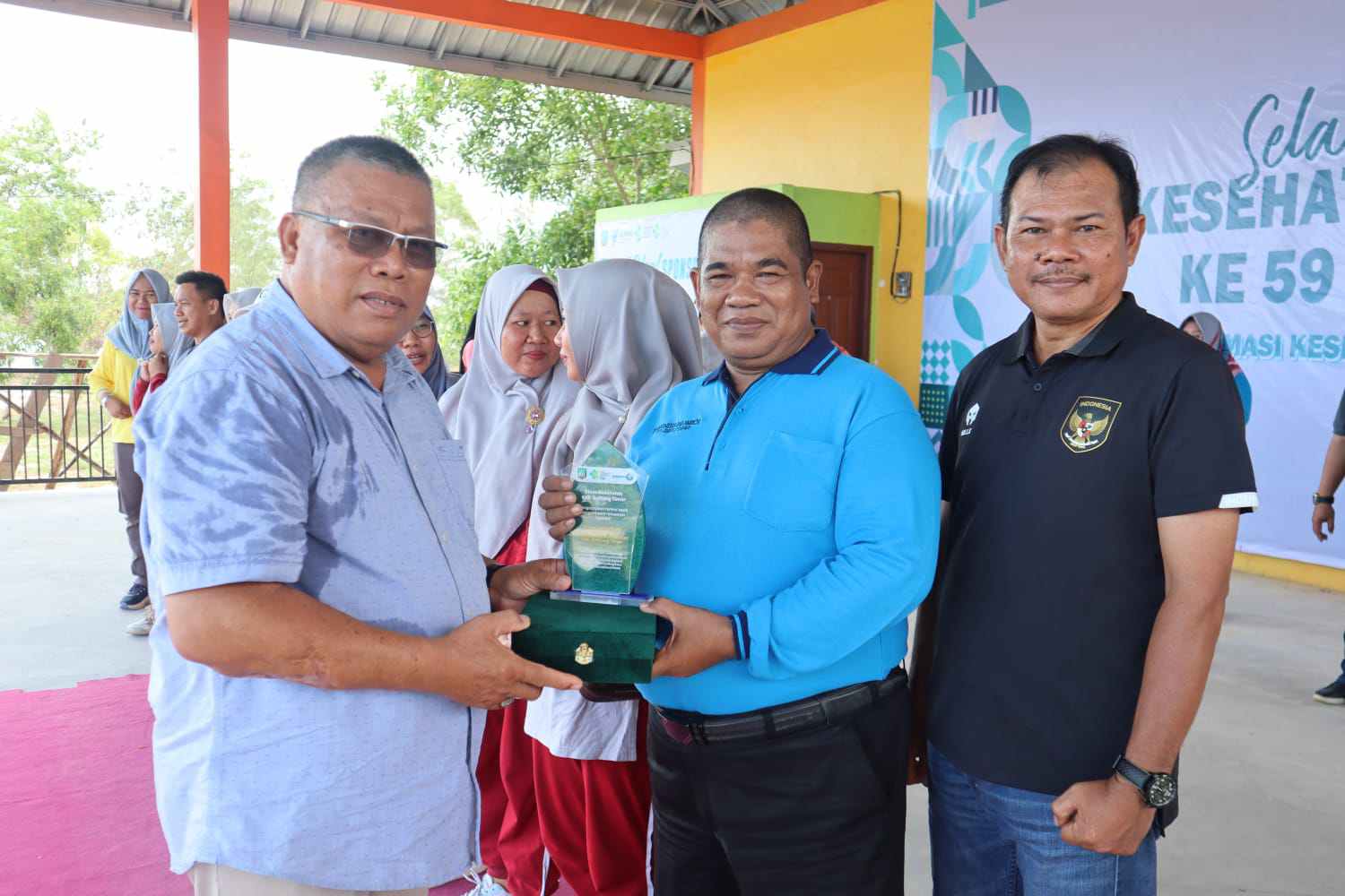 Penghargaaan berupa plakat diserahkan Wakil Bupati Beltim Khairil Anwar kepada Kepala Dinas Diskotikdansa Kabupaten Beltim melalui Partono selaku Sekretaris Dinas Diskotikdansa Kabupaten Beltim pada resepsi Hari Kesehatan Nasional (HKN) ke-59 di Pantai Serdang Manggar, Sabtu (18/11/2023).