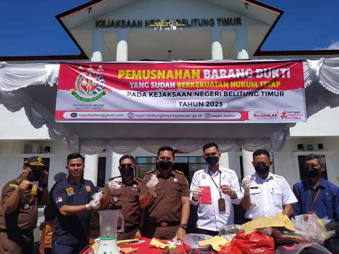 BELITUNG TIMUR – MB1 || Kejaksaan Negeri Belitung Timur (Kejari Beltim) memusnahkan barang bukti dari 25 perkara tindak pidana umum yang telah memiliki kekuatan hukum tetap, Rabu (29/11/2023).