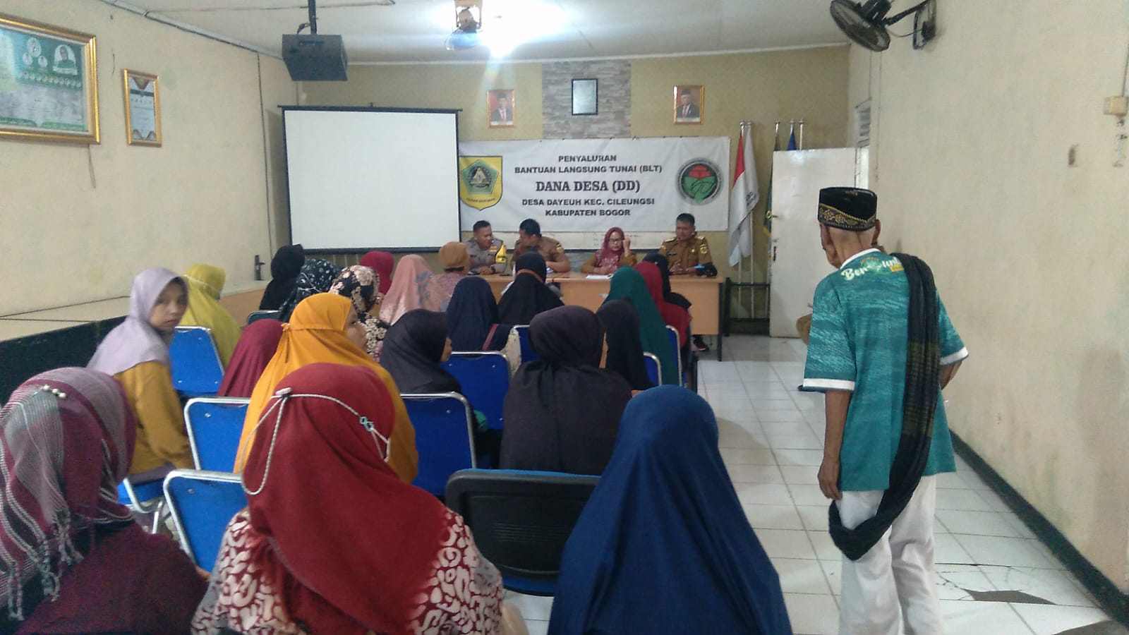 DAYEUH – CILEUNGSI – BOGOR – MB1 || Pemerintah Desa Dayeuh menyalurkan bantuan Langsung Tunai Dana Desa Triwulan IV tahun anggaran 2023 untuk bulan 10, 11, dan 12 yang diberikan kepada 75 keluarga penerima manfaat (KPM) yang mendapatkan 300 ribu rupiah perbulan, pada Senin, (04/12/2023).