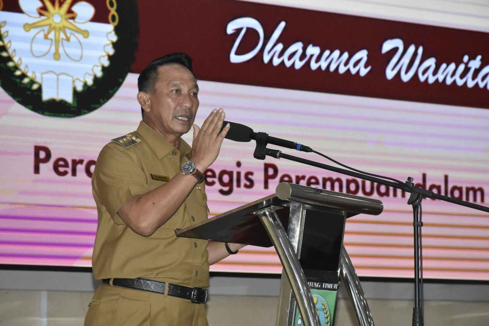 BELITUNG TIMUR – MB1 II Puncak peringatan Hari Ulang Tahun (HUT) ke-24 Dharma Wanita Persatuan (DWP) Kabupaten Belitung Timur (Beltim) digelar dengan pemotongan tumpeng di Gedung Auditorium Zah...