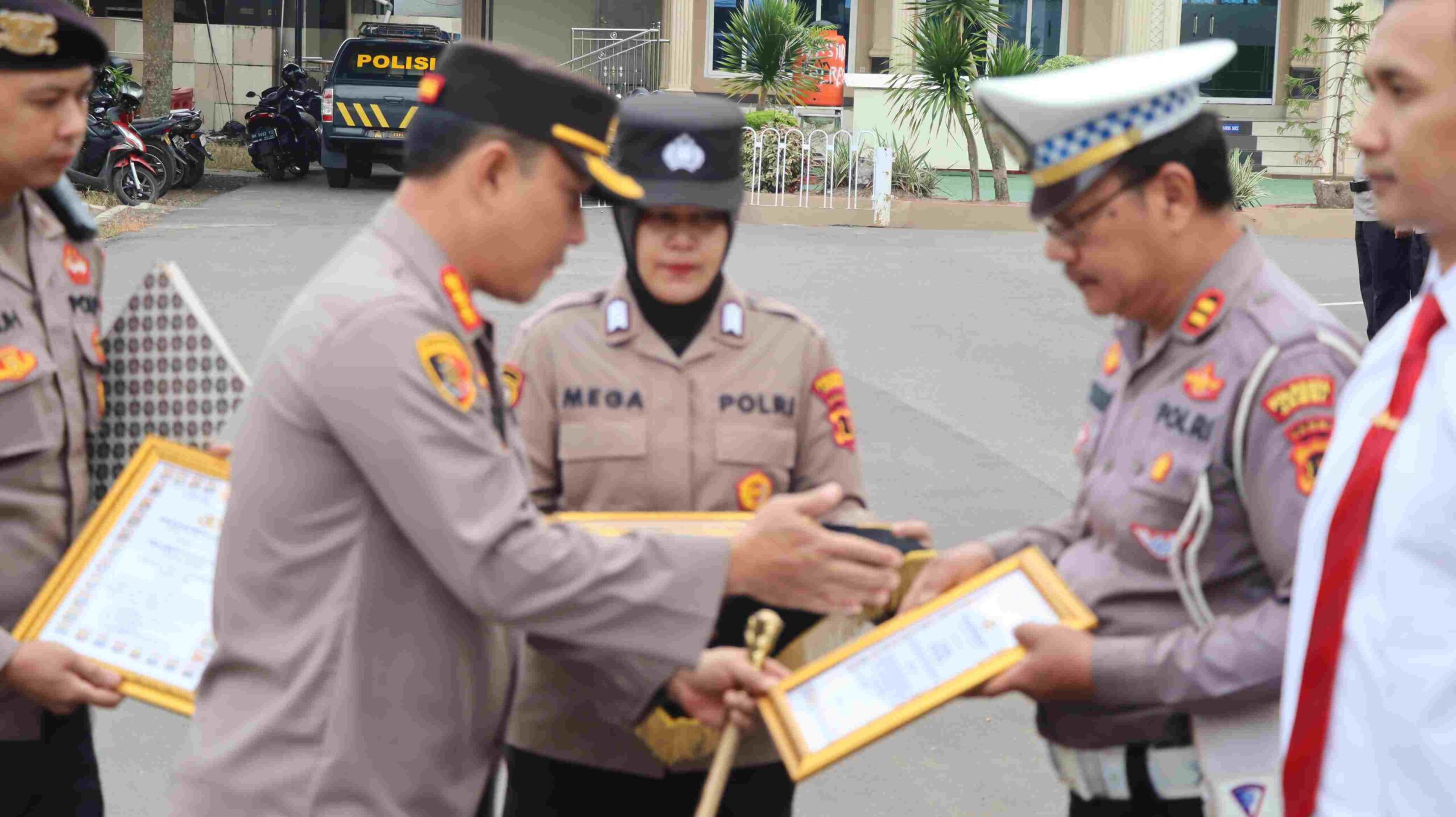 JAMBI – MB1 II Kapolresta Jambi Kombes Pol Eko Wahyudi SIK MH saat pelaksanaan apel pagi rutin sekaligus melaksanakan pemberian penghargaan atau reward kepada personel yang berprestasi. Apel yan...