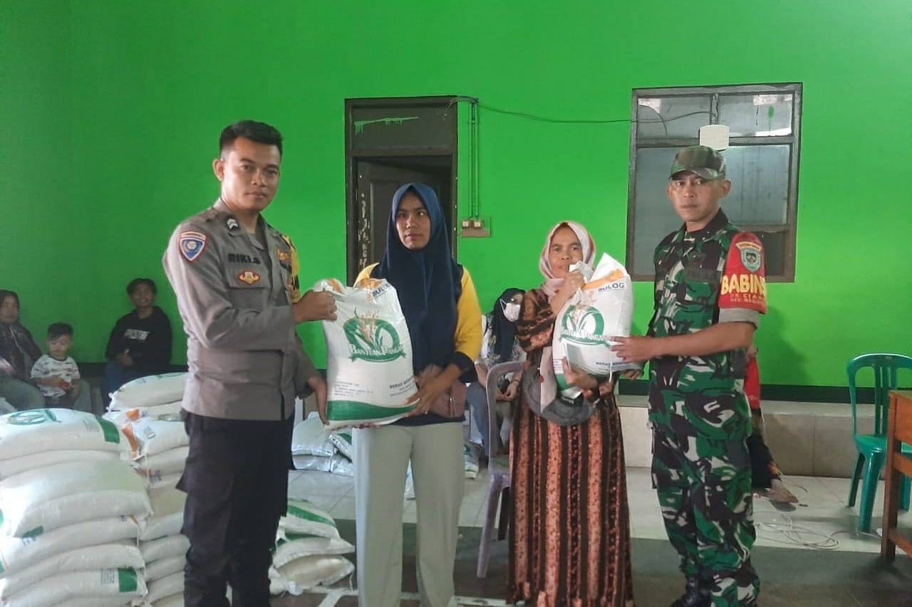 BANDUNG – MB1 II Bhabinkamtibmas Desa Ciaro, Polsek Nagreg Polresta Bandung Polda Jabar, Briptu Riki Sopahi bersama dengan Babinsa, Sertu Kusmayadi, monitoring penyaluran bantuan pangan berupa b...