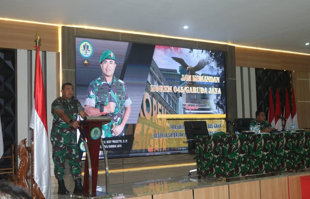 Pengarahan dilakukan usai melaksanakan apel luar biasa di lapangan Makorem 045/Gaya yang di ikuti 621 orang personil Makorem 045/Gaya, Kodim 0413/Bka, Kodim 0431/Babar, Kodim 0432/Basel, Batalyon 147/KGJ dan Satbalakrem 045/Gaya serta Vicon dengan Kodim 0414/Blt.