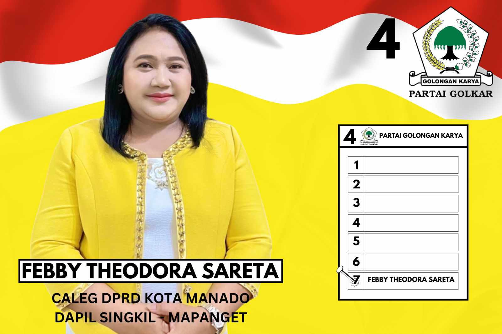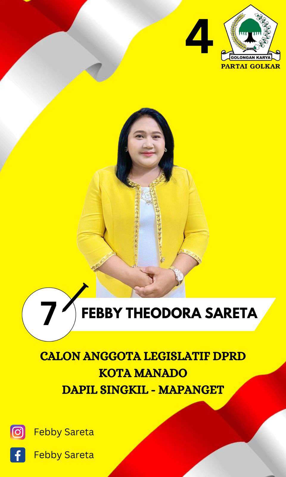 Pantauan wartawan media ini, calon legislatif ( caleg ) DPRD kota Manado, dapil Singkil – Mapanget partai Golkar Nomor Urut 7, Febby Theodora Sareta ( FTS) Semakin intensif untuk merebut simpati masyarakat. Pemilih pemula dan kalangan perempuan menyatakan dukungan, sebab bagi mereka Visi dan Misinya sangat jelas, Kemudian komitmennya melayani dengan tulus untuk kepentingan rakyat.