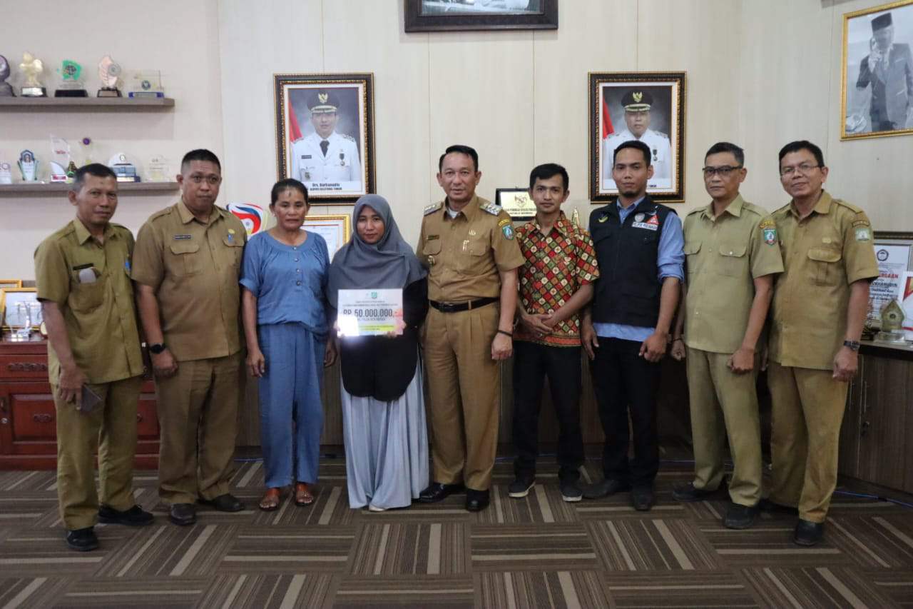 Penyerahan bantuan tersebut dihadiri keluarga korban dan disaksikan Kepala Dinas Sosial P3A Kabupaten Beltim Yulhaidir dan jajarannya di ruang kerja Bupati Beltim, Selasa (16/01/2024).
