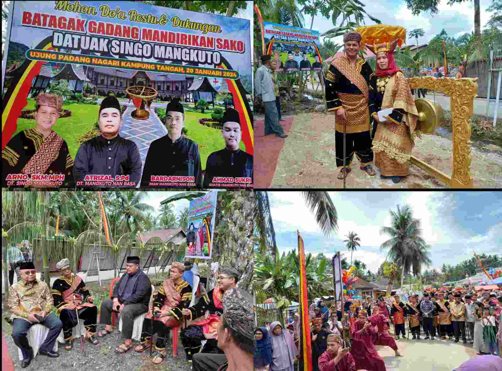 KABUPATEN AGAM – SUMBAR – MB1 II Prosesi pesta besar melantik Datuk Singo Mangkuto berlangsung meriah di Ujung Padang Nagari Kampung Tangah Kecamatan Lubuk Basung Kabupaten Agam Sumbar pada hari Sabtu (20/1/2024).