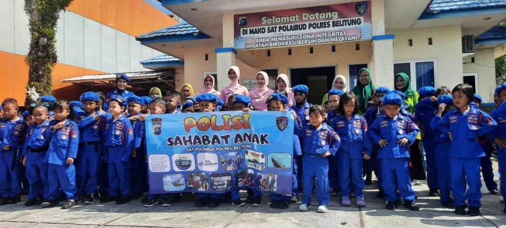 Kali ini sebanyak Puluhan orang Siswa TK Bhayangkari Cabang Belitung yang didampingi Ketua Cabang Bhayangkari Beserta Anggota Bhayangkari Polres Belitung Dan guru pembimbing, Serta Orang tua Murid, mengikuti program Polsanak sekaligus melakukan kegiatan studi wisata ke Mako Satpolairud Polres Belitung.