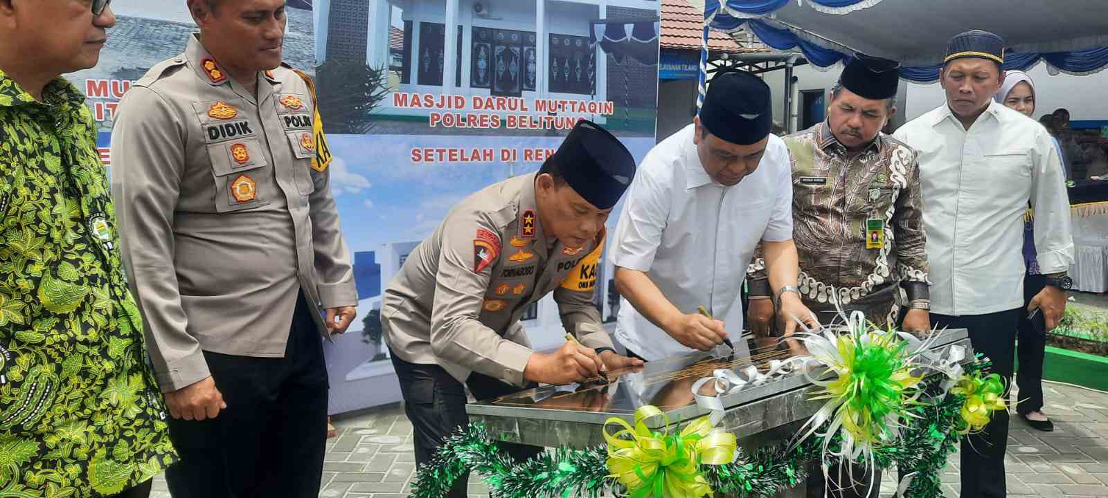 Peresmian ditandai dengan penandatanganan prasasti oleh Wakil Ketua Dewan Masjid Indonesia (DMI) Pusat, Komjen Polisi (Purn) Dr,H. Syafrudin Kambo, M.Si Dan Kapolda Babel Dan Di lanjutkan Dengan Penggutingan Pita.