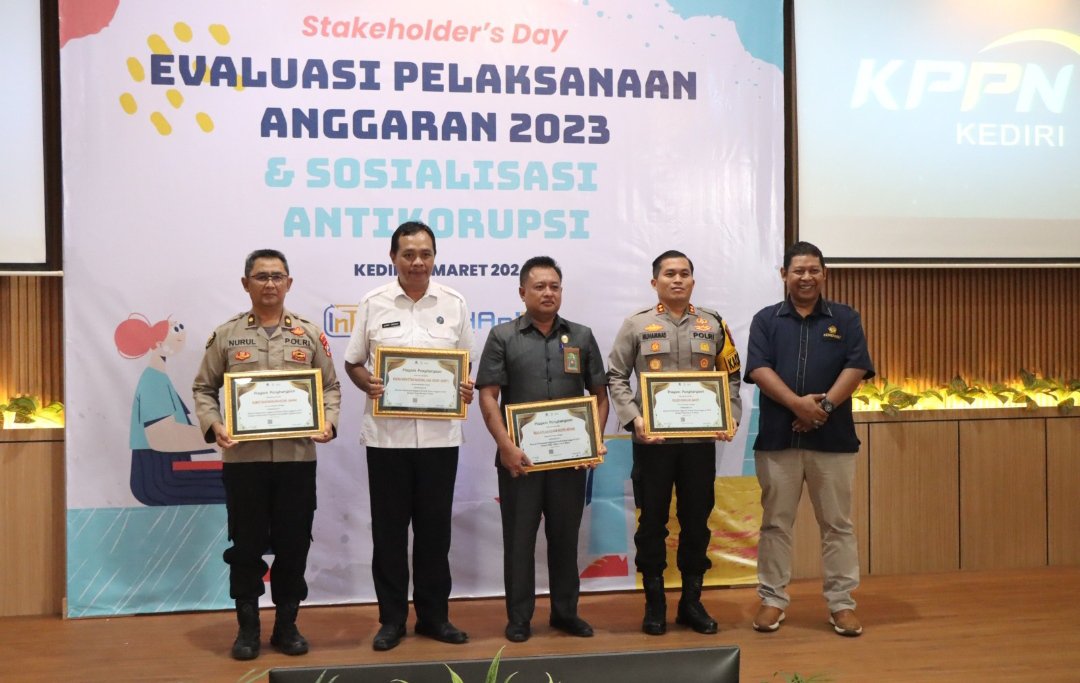 Piagam penghargaan tersebut diberikan oleh Kepala KPPN Kediri, Pembina tingkat I Moch. Izma Nur Choironi, S.H., L.L.M., di aula Panjalu KPPN Kediri sebagai bentuk apresiasi atas Peringkat 1 Kinerja Pelaksanaan Anggaran Terbaik Tahun Anggaran 2023 Kategori Pagu Diatas 15 Milyar.