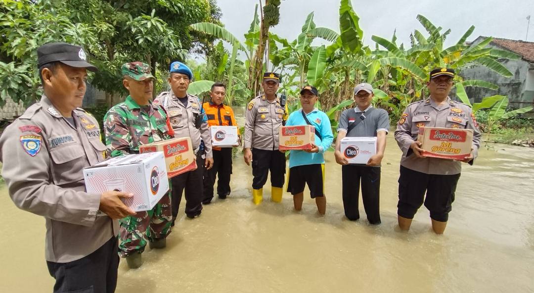 SOLO – MB1 II Kapolsek Dander AKP JADMIKO, SH, bersama anggota bhabinkamtibmas dan Babinsa berbagi kepada warga berdampak banjir Bengawan Solo di Desa Ngulanan dan Desa Ngablak. Dalam kesempatan ini Kapolsek Dander menyerahkan bantuan berupa mie instan dan air mineral.