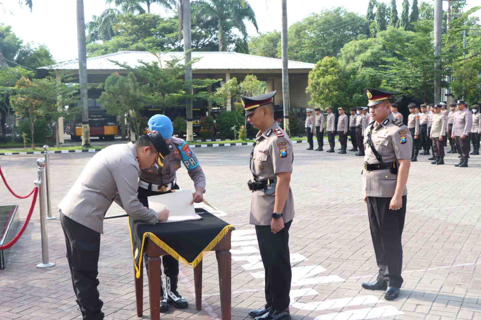 NGANJUK – JATIM, MB1 II Nganjuk kapolres nganjuk AKBP Muhammad S. H. S. I. K.. M. Si… memipin upacara serah Terima jabatan kasar Intelkam upacara dilaksanakan di lapangan apel polres nganjuk dihadiri oleh pejabat utama (PJU) kapolres jajaran polsek nganjuk dan anggota polres nganjuk kamis (28/03/2024)