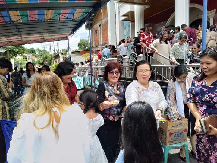 Mengawali ibadah dimulai pelayan khusus dan seluruh jemaat membawa setangkai bunga segar disematkan di Salib yang di siapkan oleh panitia hari raya gereja (PHRG) 2024 di depan mimbar.