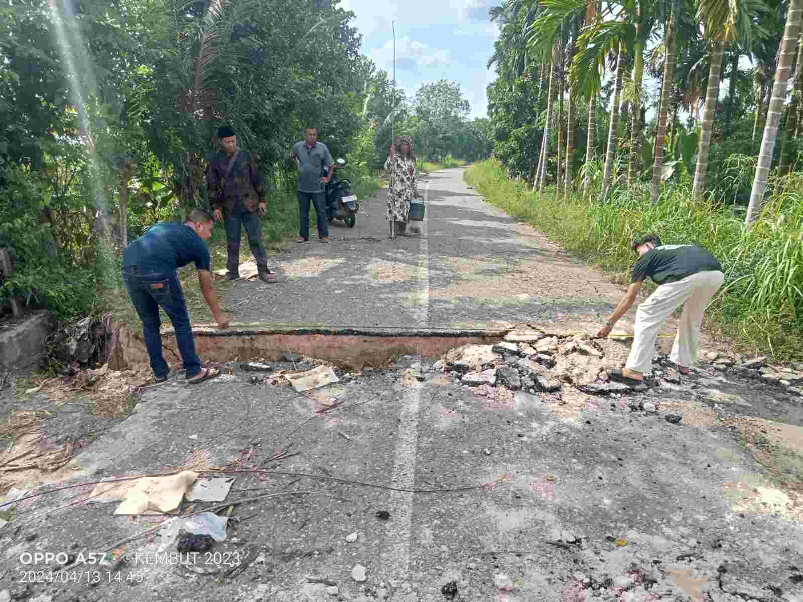 Tim survey Dinas PUTR Kabupaten Batanghari bersama Kades Pulau Betung bergerak cepat ke lokasi jembatan yang ambruk di RT 07 Desa Pulau Betung