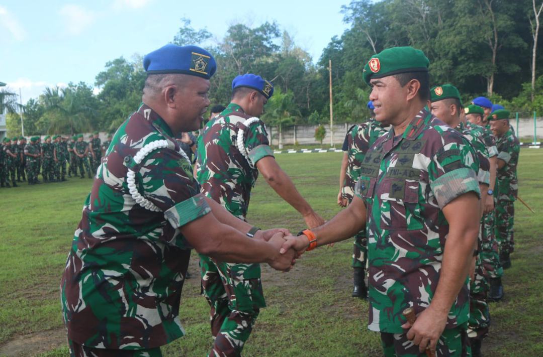 PANGKALPINANG, MB1 II Danrem 045/Gaya Brigjen TNI A.Dedy Prasetyo,S.I.P. Pimpin Apel Pagi kembali dari dinas cuti lebaran, Dilanjutkan Halal Bihalal Dengan Anggota di Lapangan Makorem 045/Gaya, Selasa (16/04/2024).