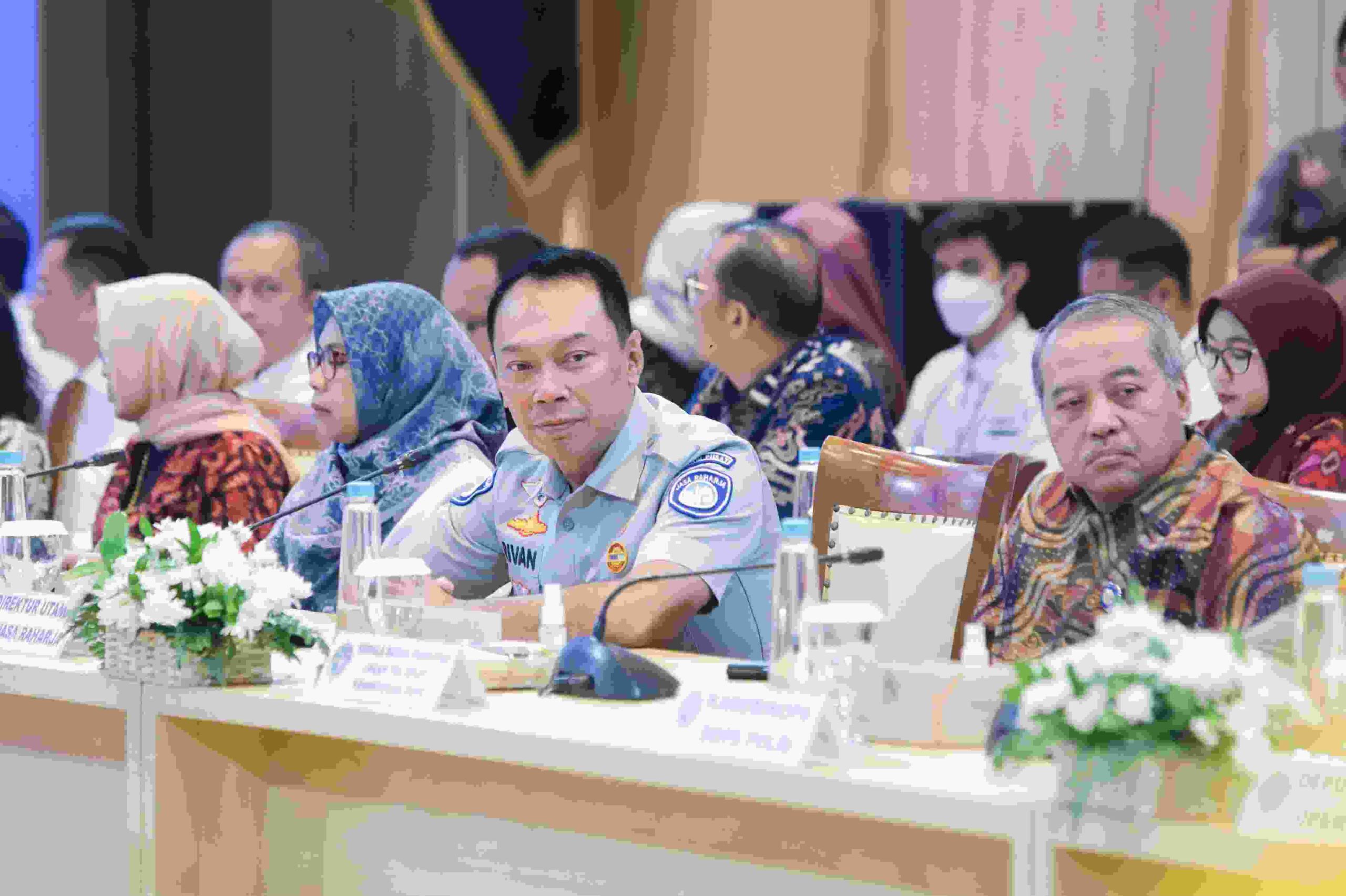 JAKARTA, MB1 II Direktur Utama Jasa Raharja Rivan A. Purwantono turut serta dalam penutupan Posko Pusat Angkutan Lebaran Terpadu 2024 oleh Menteri Perhubungan, Dr. Ir. Budi Karya Sumadi, yang juga dihadiri oleh Kakorlantas Polri Irjen. Pol. Dr. Drs. Aan Suhanan dan sejumlah pejabat terkait di Gedung Kementerian Perhubungan, Jakarta, Jumat (19/04/2024).
