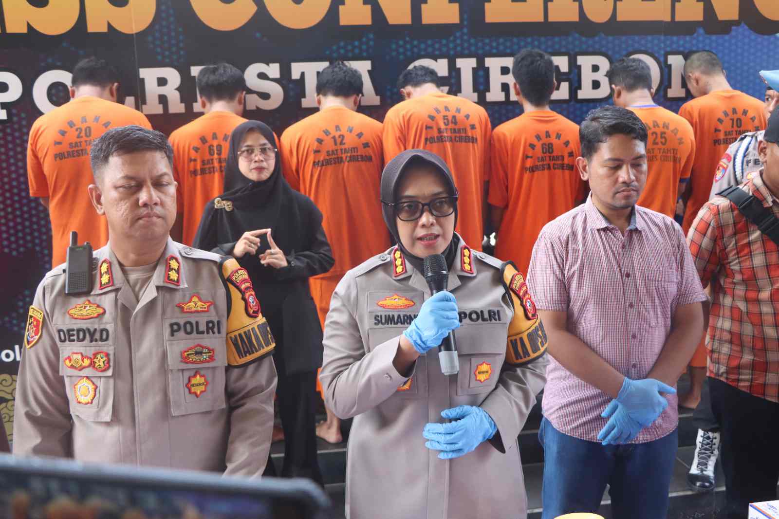 Kapolresta Cirebon Polda Jabar Kombes Pol Sumarni, S.I.K, S.H, M.H, mengatakan, terdapat lima pelaku yang berhasil diamankan jajarannya. Mereka berinisial AM (24), A (24), MWR (26), S (30), FP (28), dan seorang tersangka lainnya AN (20) yang masih DPO.
