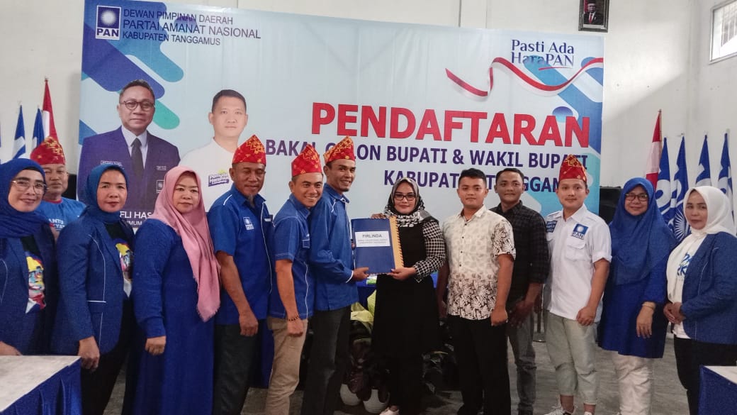 KABUPATEN TANGGAMUS, MB1 II Firlinda salah satu peserta pemilukada di kabupaten tanggamus, pada Rabu (8/5/2024) menyerahkan langsung berkas formulir bakal calon (balon) wakil bupati tanggamus ke sekretariat penjaringan di rumah PAN di pekon tekad.