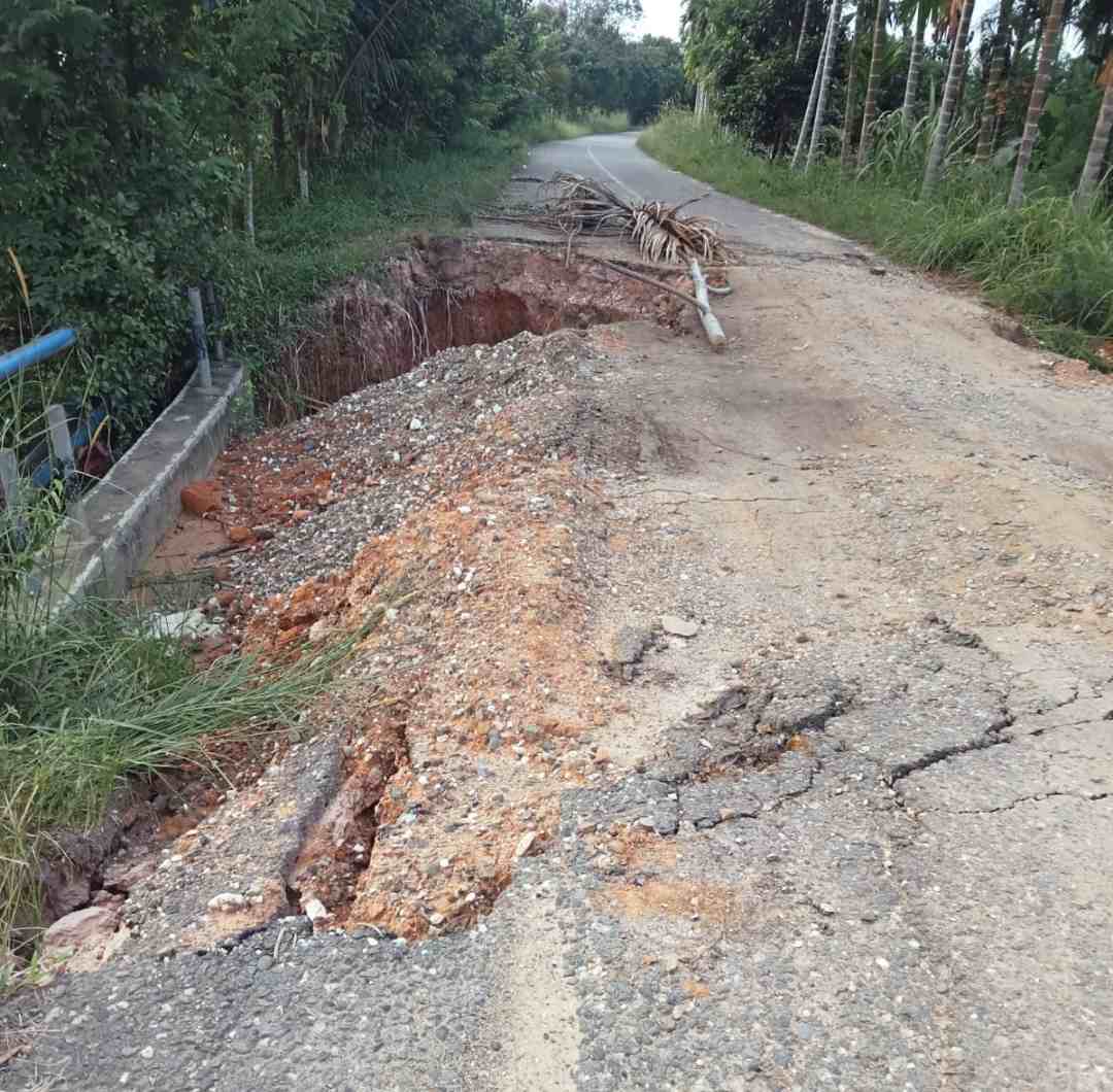 Pantauan di lokasi, kerusakan jembatan tersebut sangat parah dengan lobang besar yang menganga di kanan kiri jembatan yang lebar berdiameter 1 meter lebih dengan kedalaman mencapai kurang lebih 4 meter.