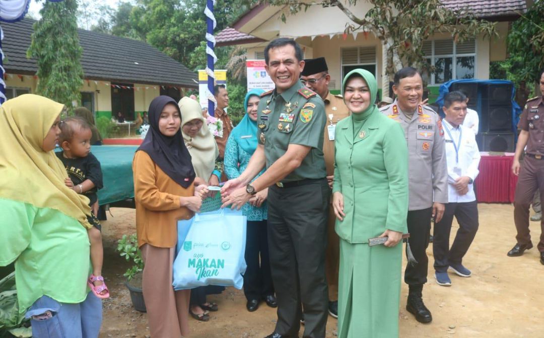 TEMPILANG, MB1 II Danrem 045/Gaya Brigjen TNI Safta Feryansyah, S.E., S.I.P.,M.Han. beserta Ibu dan Forkopimda Babel menghadiri launching program ” Rampak Gemintang ” gerakan serempak guna eliminasi kemiskinan dan stunting Bangka Belitung Tahun 2024 tempat SDN 17 Tempilang Desa Simpang yul Bangka Barat, Senin (20/05/2024)