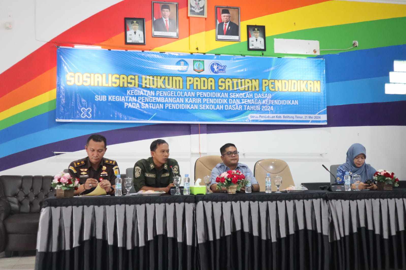 Hadir dalam sosialisasi itu, Kepala Dinas Pendidikan Belitung Timur, Sarjano, Kasi Intel Kejari Beltim, Yoyok Junaedi, Baniara Sinaga selaku Kasi Datun Kejari Beltim dan Agung Nugroho selaku Kasi Pidum Kejari Beltim.