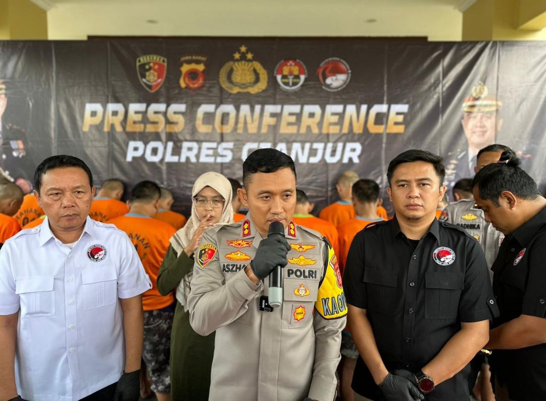Kapolres Cianjur AKBP Aszhari, S.H., S.I.K., M.Si. mengatakan, dari 18 kasus tersebut Sat Res Narkoba Polres Cianjur berhasil mengamankan sebanyak 24 orang tersangka, 24 orang tersangka tersebut semuanya berjenis kelamin laki-laki.