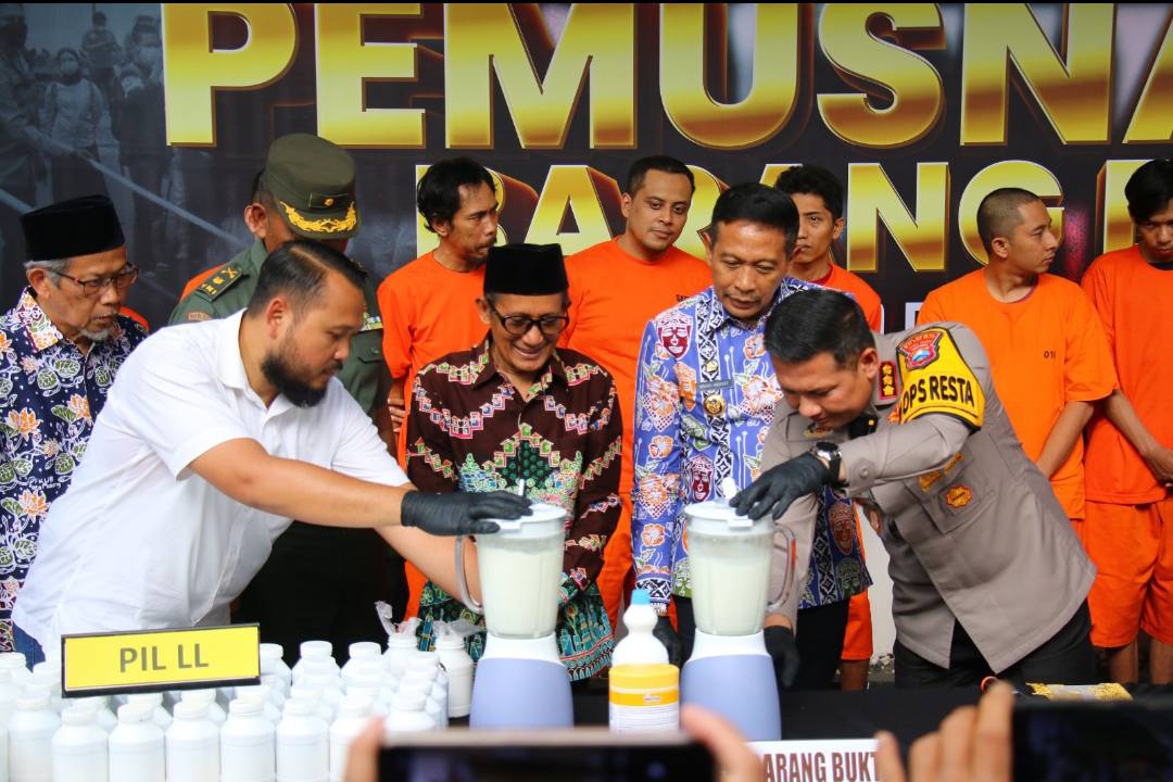 “Pemusnahan barang bukti narkoba yang berhasil kami sita dari 9 laporan polisi. Barang bukti ini terdiri dari 1,5 kg Sabu, 44,216 kg Ganja, 391 butir Ekstasi, 19.000 butir Carnophen, dan 50.000 butir Pil Koplo berlogo ££,” ujar Kombes Pol Budi Hermanto,Rabu (22/05).