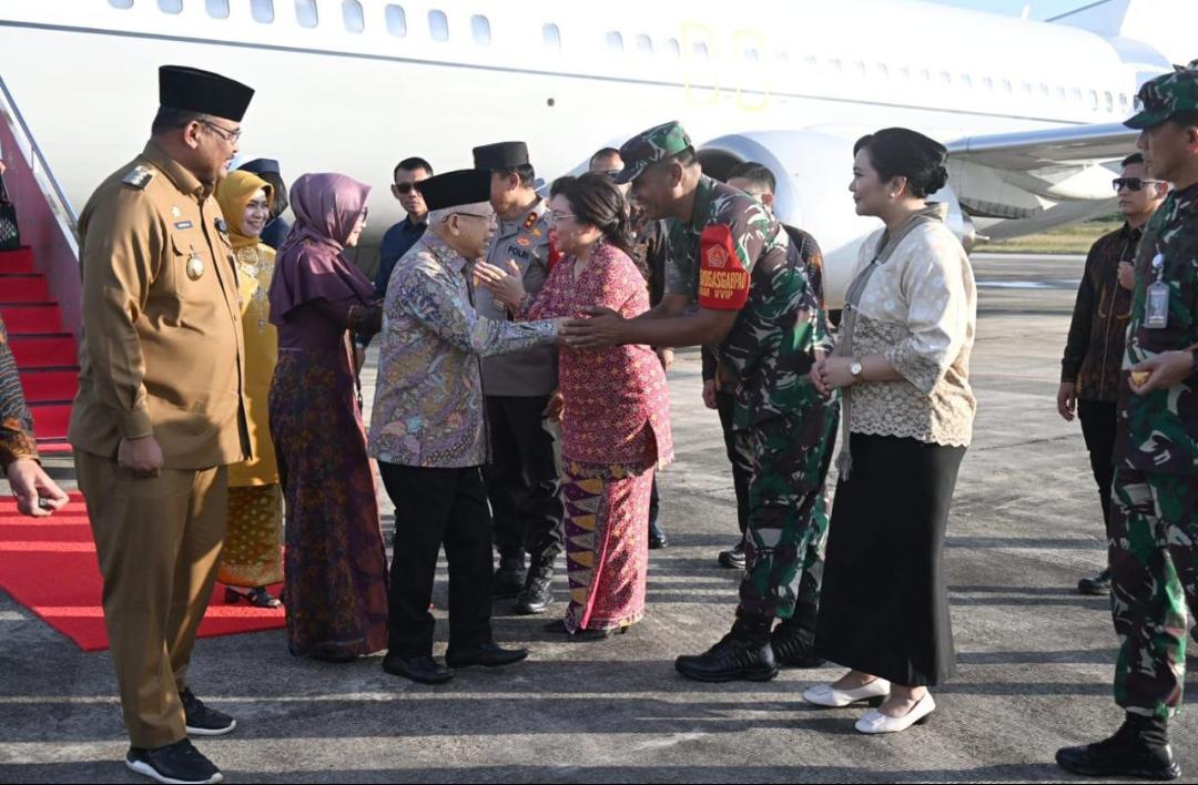 PANGKALPINANG, MB1 II Hari ini, Wakil Presiden (Wapres) K.H. Ma’ruf Amin didampingi Ibu Hj. Wury Ma’ruf Amin mengawali rangkaian kunjungan kerja (kunker) ke Provinsi Kepulauan Bangka Belitung (Kep. Babel), Selasa (28/5/2024).