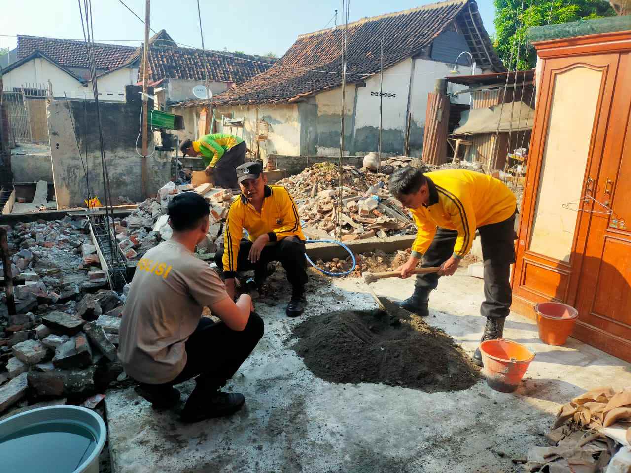 Selama kegiatan berlangsung, para anggota Polres Nganjuk dan Polsek bekerja sama dengan warga masyarakat sekitar untuk melakukan berbagai pekerjaan mulai dari membongkar bagian rumah yang rusak, membersihkan sisa bangunan hingga mengaduk semen serta membantu pekerjaan tukang.