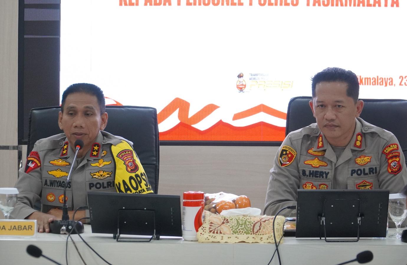 JABAR, MB1 II Kapolda Jawa Barat Irjen Pol. Dr. Akhmad Wiyagus, S.I.K., M.Si., M.M., didampingi pejabat Utama Polda Jawa Barat melaksanakan kunjungan ke Polres Tasikmalaya yang dilaksanakan di Ruang PPKO Polres Tasikmalaya, Minggu (23/06/2024).