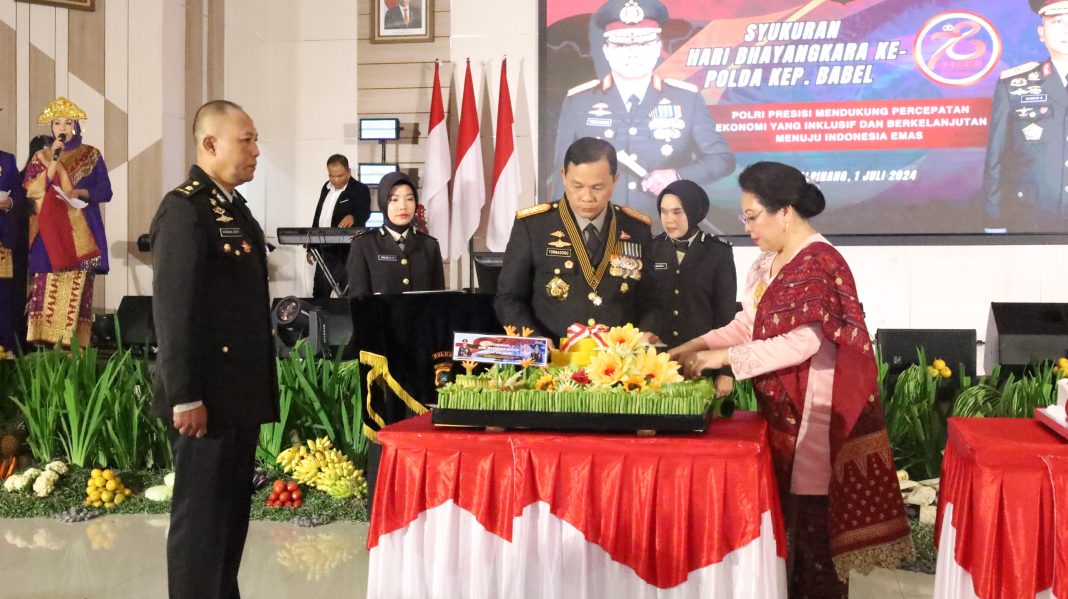 BANGKA BELITUNG, MB1 II Polda bangka belitung hari ini melaksanakan syukuran hari bhayangkara ke-78 di gedung tribrata polda babel, senin (01/07/2024).