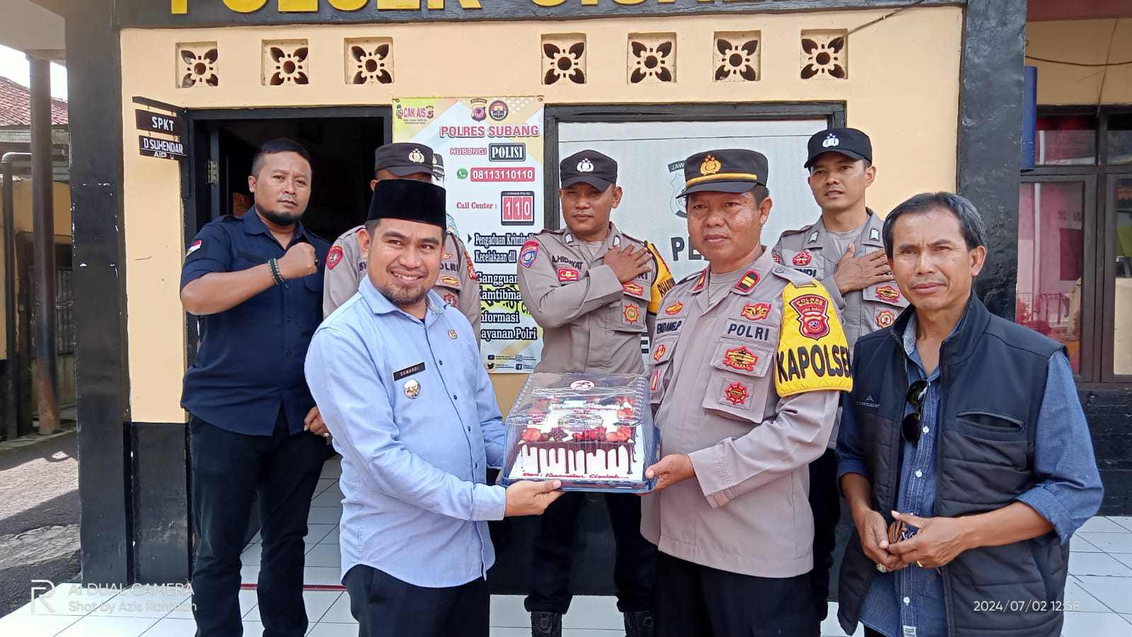 SUBANG – JABAR, MB1 II Dalam rangka meningkatkan kualitas tali silaturahmi dan memperkuat Sinergitas antara Pemerintah Kecamatan Cisalak dan Polsek Cisalak, Camat Cisalak Sumardi S.STP.M.Ap yang di dampingi Kasi Trantib berikan ucapan HUT Bhayangkara yang Ke-78, Selasa (2/7/2024).
