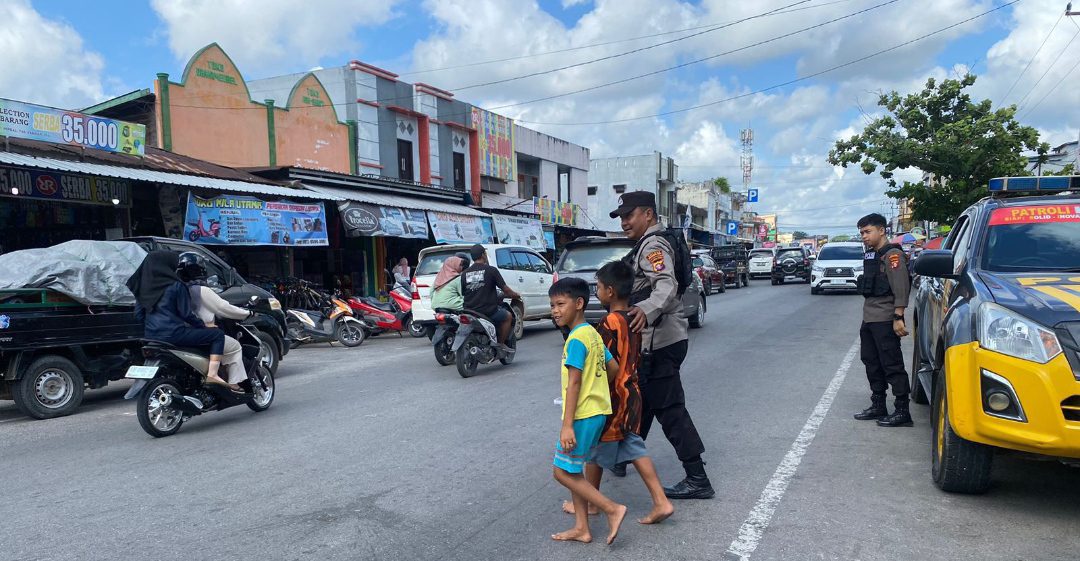 POLRES KOBAR, MB1 II Untuk mengantisipasi adanya kemacetan lalu lintas di hari Minggu, personel Polres Kotawaringin Barat (Kobar) melakukan sambang dan pengaturan di jalur Pasar Indra Sari, Kel. Baru, Kec. Arut Selatan, Minggu (14/7/2024) pagi.