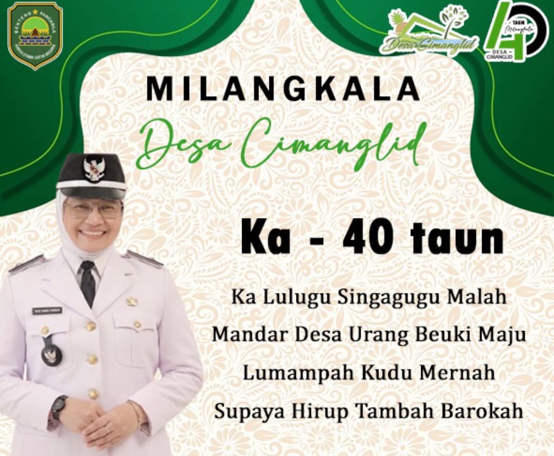 “Agar Desa Cimanglid BERSINAR dengan pepatah bahasa sunda ” Ka Lulugu Singagugu, Malah Mandar Desa Urang Beuki Maju, Lumampah Kudu Menah, Supaya Hirup Tambah Barokah” pungkas Ibu Kades Tatat Nurul F.