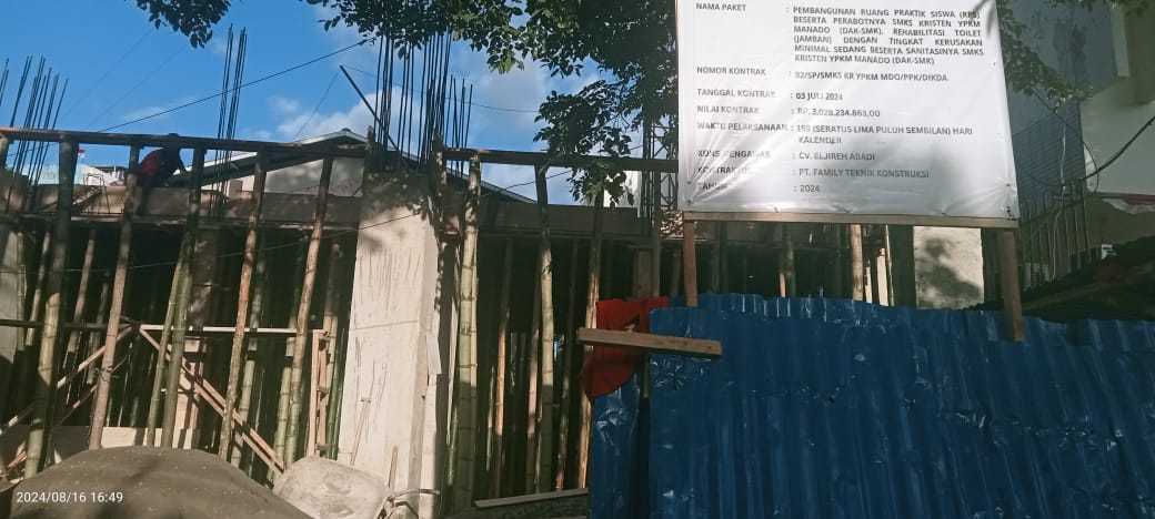 KOTA MANADO – SULUT, MB1 II Berdasarkan penelusuran awak media ini, progres pekerjaan Dana alokasi khusus (DAK) fisik tahun anggaran 2024 untuk SMA/ SMK/SLB Di Dinas Pendidikan Daerah Provinsi Sulawesi Utara, Terpantau di antaranya, : Pekerjaan Pembangunan Ruang Praktik Siswa ( RPS )SMK Negeri 6 Manado, pembangunan ruang praktik Siswa ( RPS) SMK Negeri 4 Manado dan pembangunan ruang praktik Siswa ( RPS) SMKS Kristen Manado terus dikebut oleh penyedia Jasa.