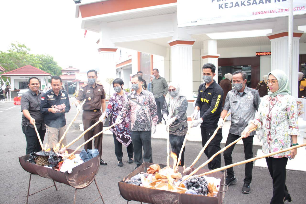 “Keseluruhan Barang Bukti ini baik barang bukti narkotika dan non narkotika Kita musnahkan dengan cara cara dihancurkan dan dibakar”, jelas Kajari Bangka