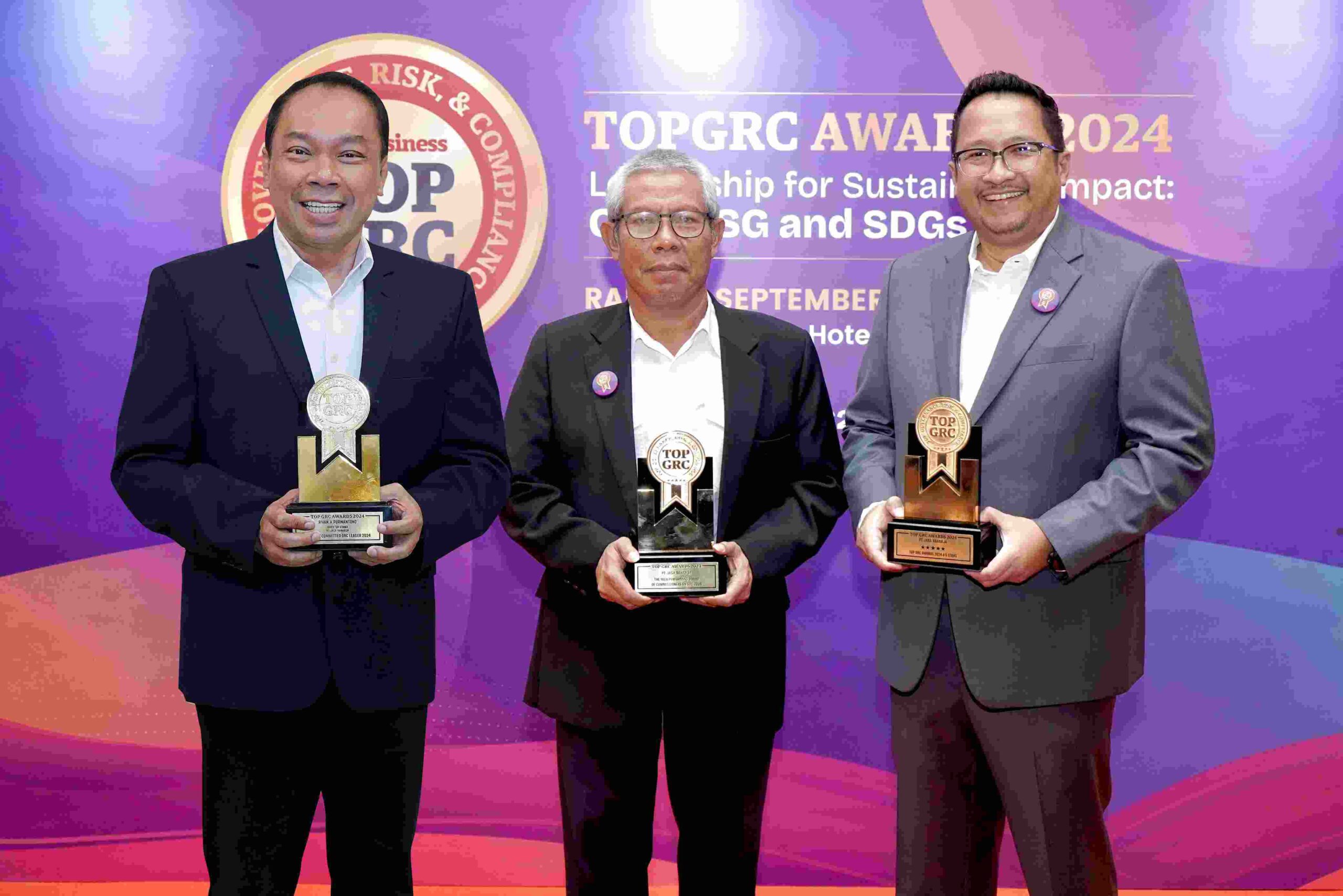 Sejumlah penghargaan, yakni ‘TOP GRC Awards 2024 #5Star’, ‘The High Performing Board of Commissioners on GRC 2024’ yang diberikan kepada Dewan Komisaris Jasa Raharja, dan ‘The Most Committed GRC Leader 202y’ yang dinobatkan kepada Direktur Utama Jasa Raharja Rivan A. Purwantono. Apresiasi tersebut diterima oleh Direktur Manajemen Risiko dan Kepatuhan Jasa Raharja, Harwan Muldidarmawan dan Komisaris Independen Jasa Raharja, Eko Suwardi.