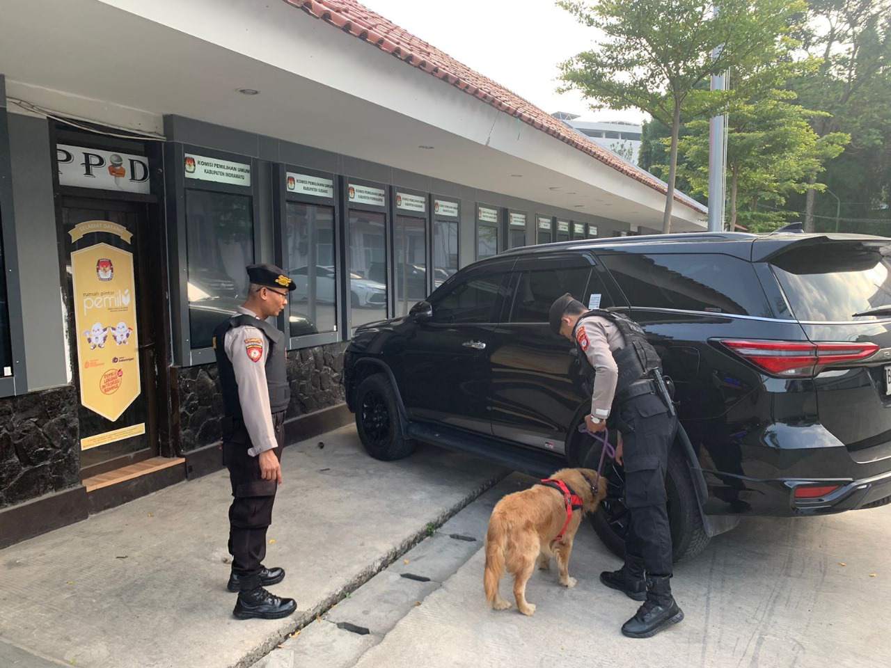 Polda Jabar Sterilisasi Kantor KPU dan Bawaslu Provinsi Jabar Dengan Libatkan Satwa