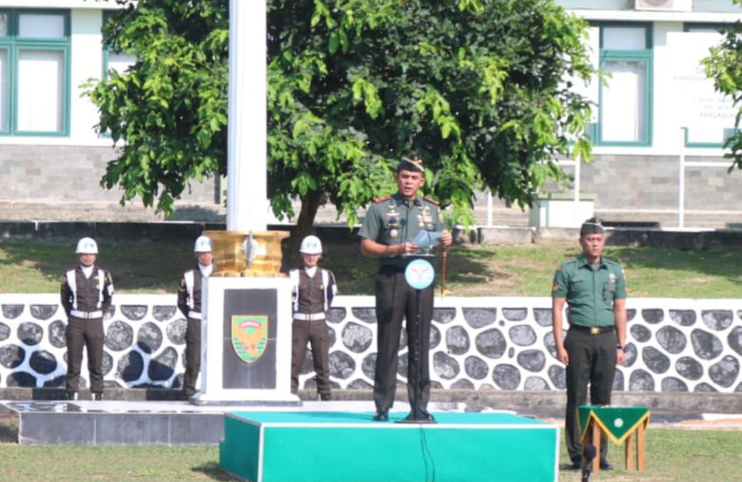 PANGKALPINANG, MB1 II Prajurit dan PNS Korem 045/Garuda Jaya melaksanakan upacara memperingati Hari Sumpah Pemuda ke-96 tahun 2024 di Lapangan Upacara Makorem 045/Gaya dengan Inspektur Upacara Danrem 045/Gaya Brigjen TNI Safta Feryansyah ,S.E.,S.I.P.,M.Han., Senin (28/10/2024) Pagi.