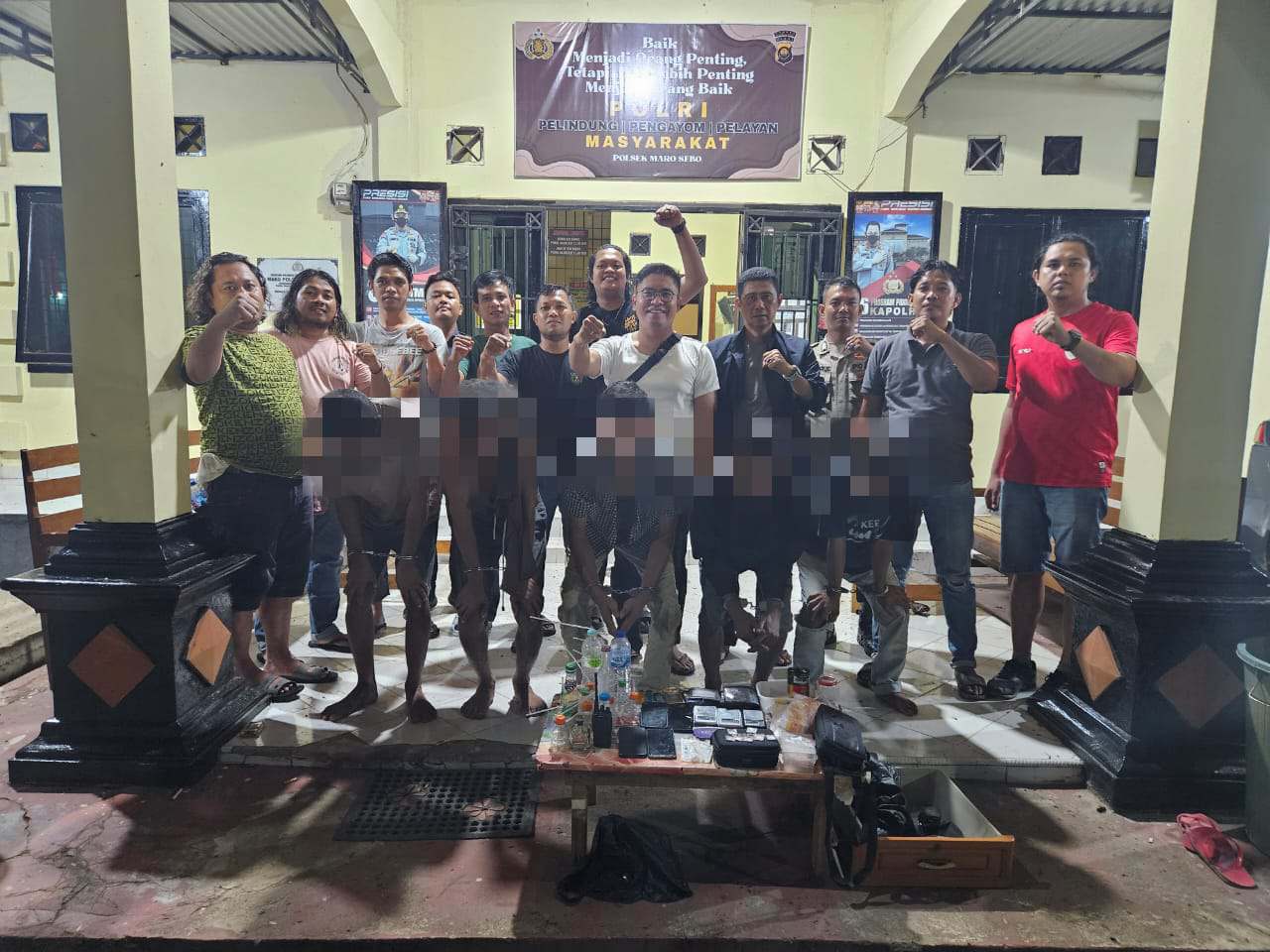 Mendapat informasi tersebut Unit Reskrim Polsek Maro Sebo berkoordinasi dengan Sat Res Narkoba Polres Muaro Jambi guna melakukan penyelidikan awal, sekira pkl 20.30 wib Tim melakukan penindakan di pondok yang dilaporkan dan mengamankan 5 orang beserta barang bukti diduga narkotika jenis sabu selanjutnya orang dan barang bukti diamankan di Polsek Maro Sebo untuk Interogasi awal, (A.R)24 Th ALAMAT : RT. 03 Desa Mudung Darat Kec. Maro Sebo. (K)41 Th ALAMAT : RT.08 Desa Mudung Darat Kec. Maro Sebo, (M) 38 Th ALAMAT : RT.07 Kel. Jambi Kecil Kec. Maro Sebo, (S)29 Th ALAMAT : RT.03 Desa Jambi Tulo Kec. Maro Sebo, (A) 27 Th ALAMAT : RT.03 Desa Setiris Kec. Maro Sebo.