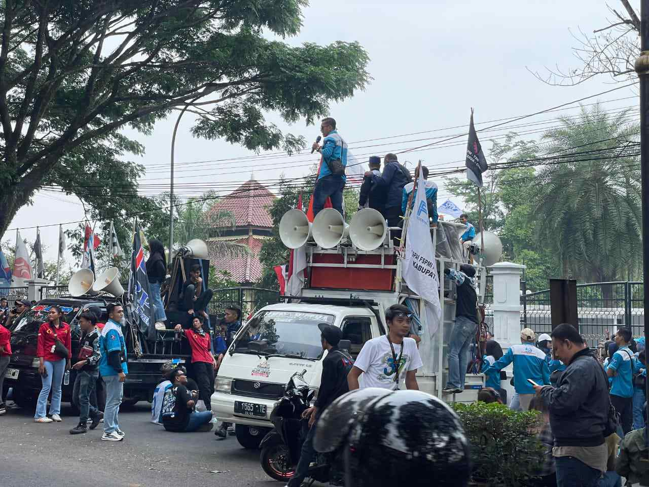 CIANJUR – JABAR, MB1 II Jajaran Polres Cianjur melaksanakan pengamanan aksi unjuk rasa (unras) dari Gabungan Serikat Buruh (GSB) Cianjur di Kantor Pemda Kabupaten Cianjur dan di Kantor DPRD Kabupaten Cianjur, Kamis (14/11/2024).