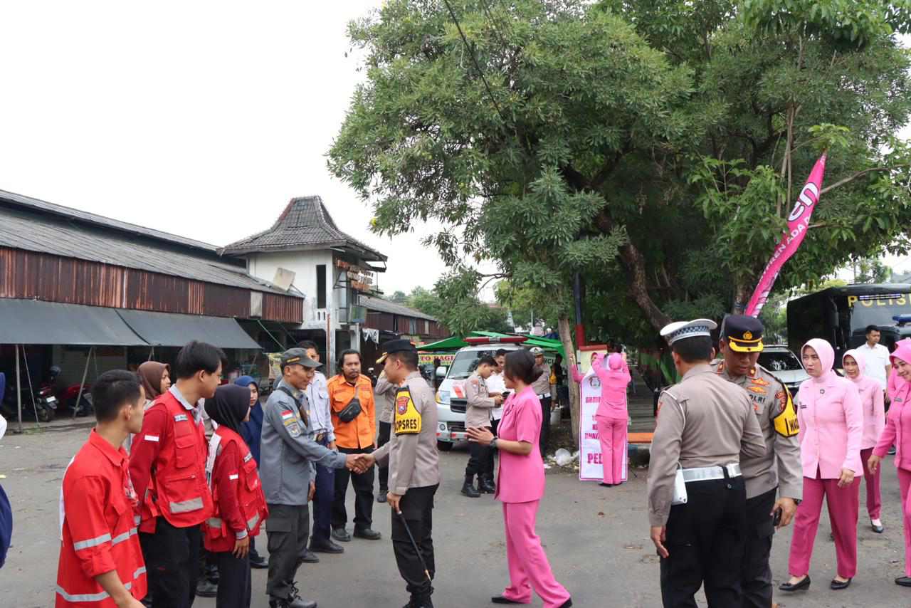 NGANJUK, MB1 II Kapolres nganjuk AKBP muhammad S. H. S. I k.. M. Si bersama ketua Bhayangkari cabang nganjuk Ny. Anggun muhammad mengunjungi pos pelayanan dan pos pengamanan operasi ketupat semeru 202...